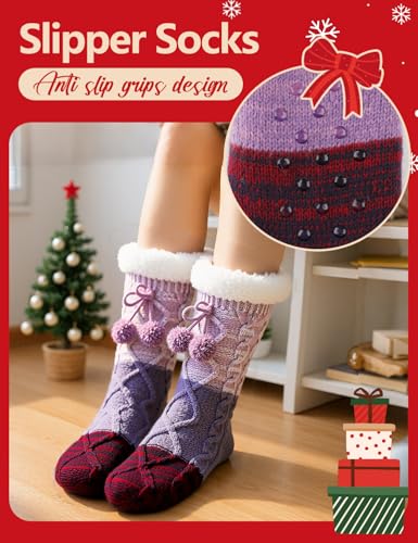 HONGTEYA Women Slipper Fuzzy Socks, Non Slip Winter toasty Fluffy Fleece Lined Cozy plush Thick Comfy Thermal Christmas Sock