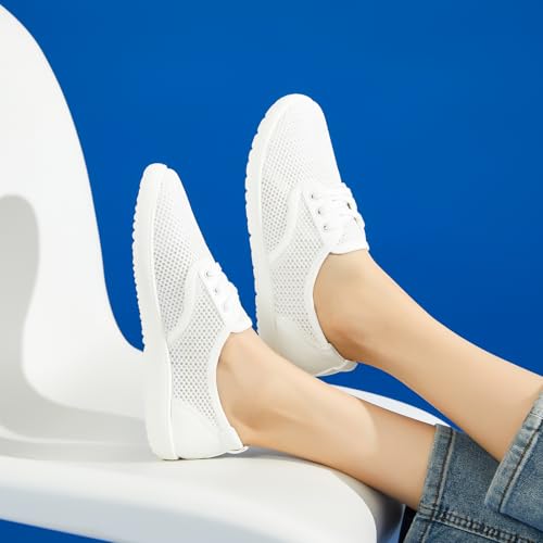 sought-after ! THATXUAOV Women's Breathable Mesh Tennis Shoes - Lightweight Low Top Lace-Up Canvas White Sneakers for Casual Walking, Sports, and Everyday Comfort