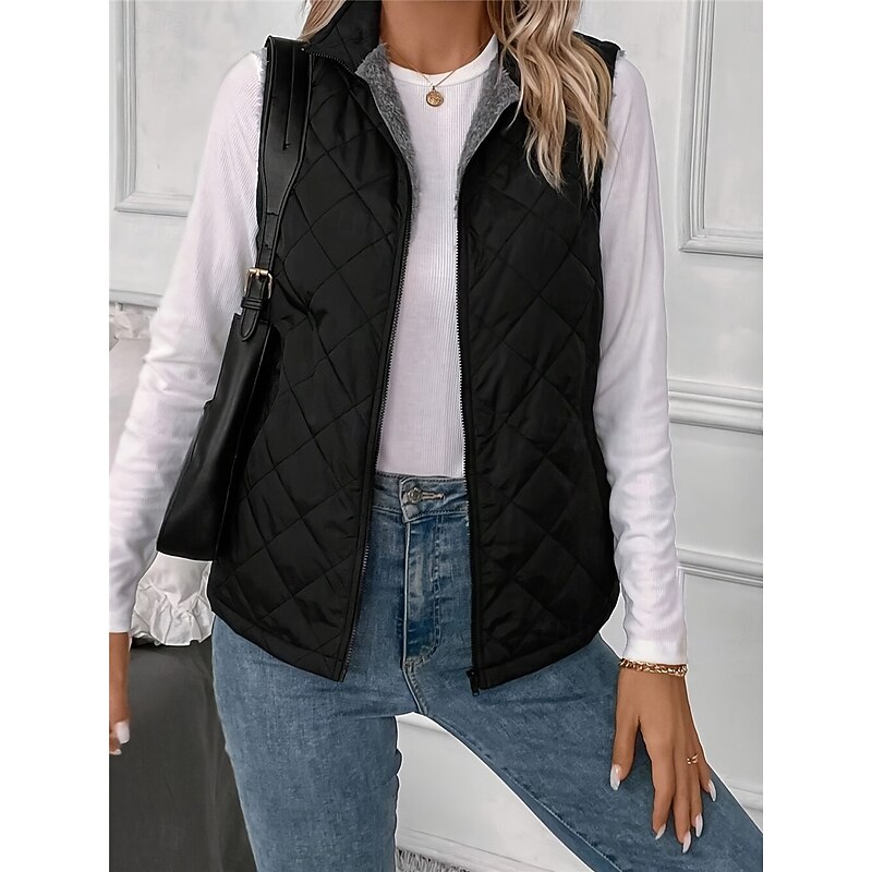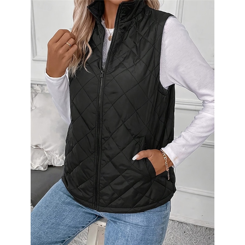 Highlights [Fabric] : Crafted from high-quality polyester, this women's fleece vest offers both warmth and breathability, ensuring comfort throughout the fall and winter seasons. The material provides a micro-elastic fit, allowing for ease of movement without feeling restrictive. [Fit] : Featuring a regular fit, this sleeveless vest is designed to layer effortlessly over other garments. The iconic silhouette complements casual attire, while the stand collar and regular length add a touch of timeless style. [Design Highlights] : The vest boasts a versatile plain pattern, enhanced by a functional full-length zipper for convenient wear. The fleece lining offers added insulation, and the side pockets provide practicality for keeping hands warm or storing small items. Its dark color palette adds an element of elegance and adaptability for various outfits. [Occasions] : Perfect for daily wear, vacations, street style, or simply going out, this vest combines functionality and fashion for a broad range of activities and weather conditions. Its sleek design makes it a reliable choice for both urban and outdoor settings. [Size Range] : Available in sizes S, M, L, and XL, this vest caters to a wide range of body shapes, ensuring a comfortable fit for every wearer. Perfect for everyday use. superior materials and excellent craftsmanship ensure long-lasting durability.