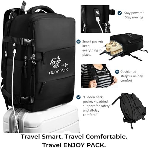 • ✈︎TRAVEL-READY DESIGN - Sized for standard airline carry-on limits, this travel backpack with shoe compartment is excellent for flights, weekend trips, or daily commutes. Padded straps offer cushy carrying, while the adaptable space holds shoes, clothes, a laptop, or travel gear with ease!