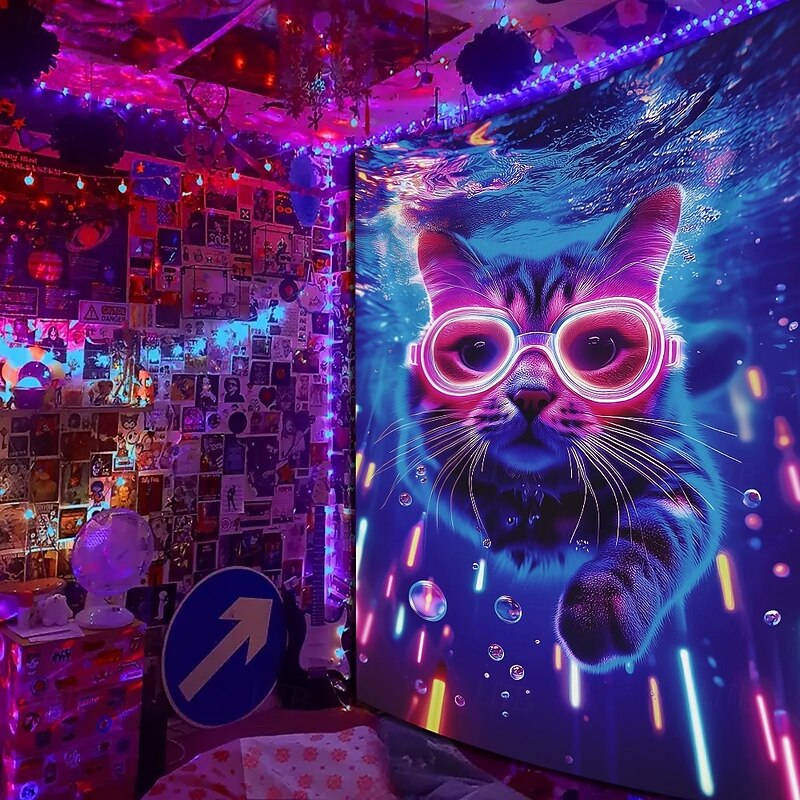 $14.99 - Blacklight Tapestry Glow in the Dark Glow Party UV Reactive Cat Trippy Misty Hanging Tapestry Wall Art Mural for Living Room Bedroom 2025. Shop for cheap Blacklight Tapestries online? Buy at lightinthebox.com on sale today!
