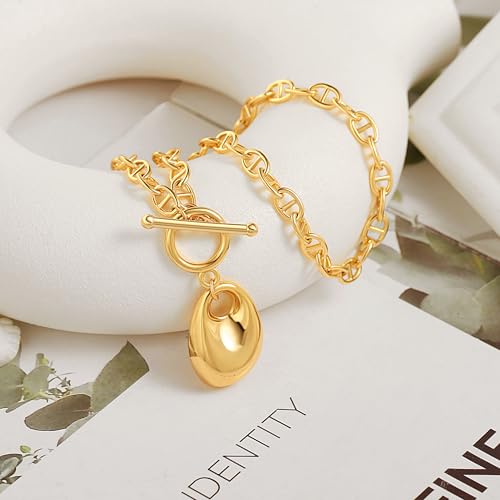 Material: Gold PlatedMetal type: Gold platedChain type: MarinerGem type: GoldDesign: This captivating gold jewelry is stealing the limelight with its simple and timeless design. The fashionable anchor chain paired with fun toggle clasp and irregular teardrop pendant make the gold chain charm necklace unique and personalized, perfectly showcasing your unique charm.Material: This gold chain pendant necklace crafted with precision and care. The chunky gold anchor chain necklace is made of 18K gold plated with brass. excellent craftsmanship brings durable quality. The flexible toggle clasp allows you to effortlessly adjust the necklace to create a lariat or Y necklace for a personalized touch.Size: The 20 inch anchor mariner chain necklace is exquisite and fashionable. The timeless teardrop pendant is 0.98in * 0.67in, sparkling and luxurious. Whether it's outing, partys, or important occasions, this toggle teardrop necklace can elevate your look with its undeniable charm.Gift: A charming and versatile chunky gold necklace is the ideal gift for your loved one. Whether it's a mother, wife, daughter, or friend, receiving a handmade necklace with love on their birthday, holiday, or anniversary will always surprise them!Service: This personalized necklace will be packaged in a soft velvet bag to protect the necklace. If you have any questions about the gold necklace, please feel free to let us know. You can also click on PERNNLA, where there are more affordable and exquisite jewelry options for you to choose from. Perfect for everyday use. High quality materials and excellent craftsmanship ensure long-lasting durability.