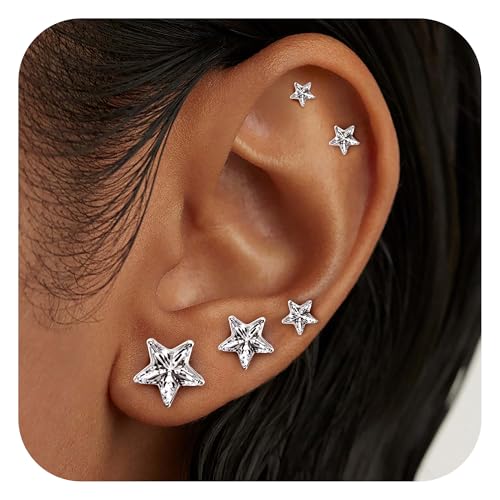 316L Stainless Steel Earrings Set Hypoallergenic Cubic Zirconia Stud Earring for Women Men (Heart/Teardrop/Oval/Star/Horse-Eye)
